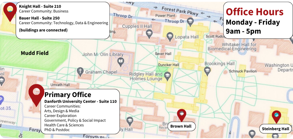 The Center for Career Engagement is an integrated hub, collaborating across Washington University in St. Louis. We provide: